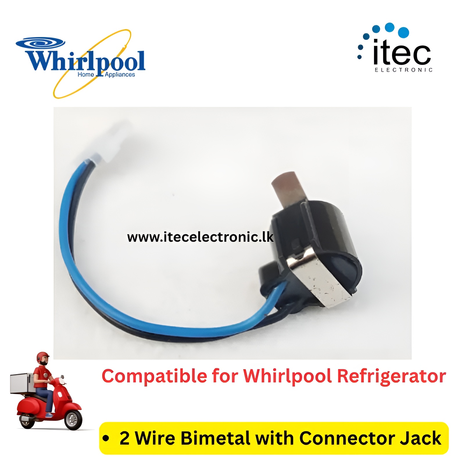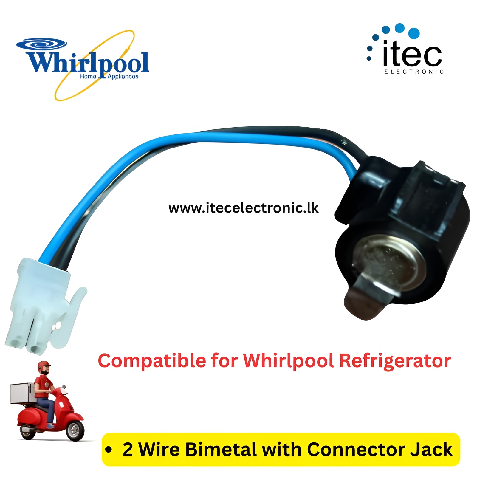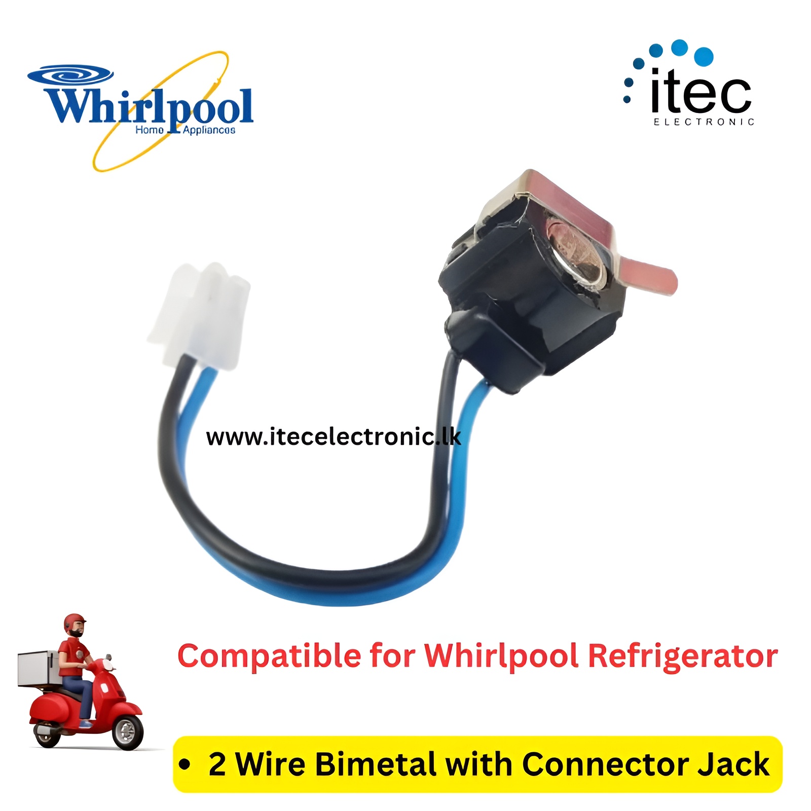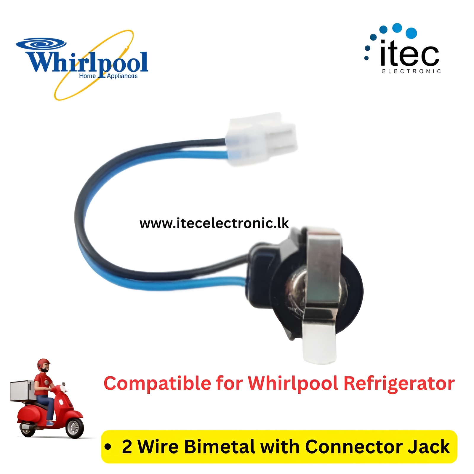 2 Wire Bimetal Compatiable for Whirlpool Refrigerator With Connector Jack.