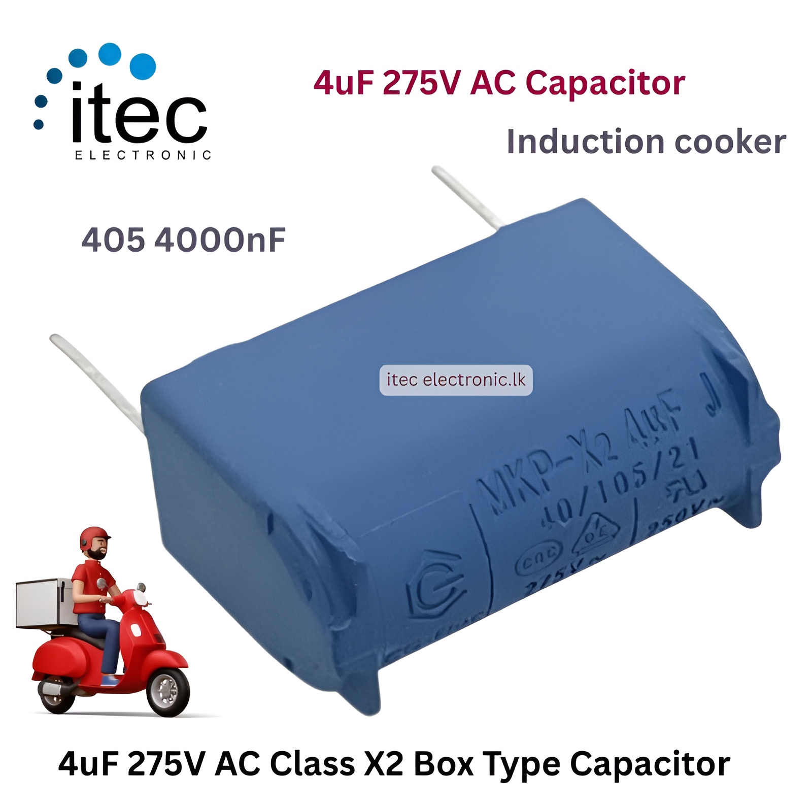 4uF 275V AC Capacitor 405 4000nF Box Type Boxtype Class X2 Induction Cooker Capacitor Metallized Polypropylene Film Capacitor MKP X2 Capacitor