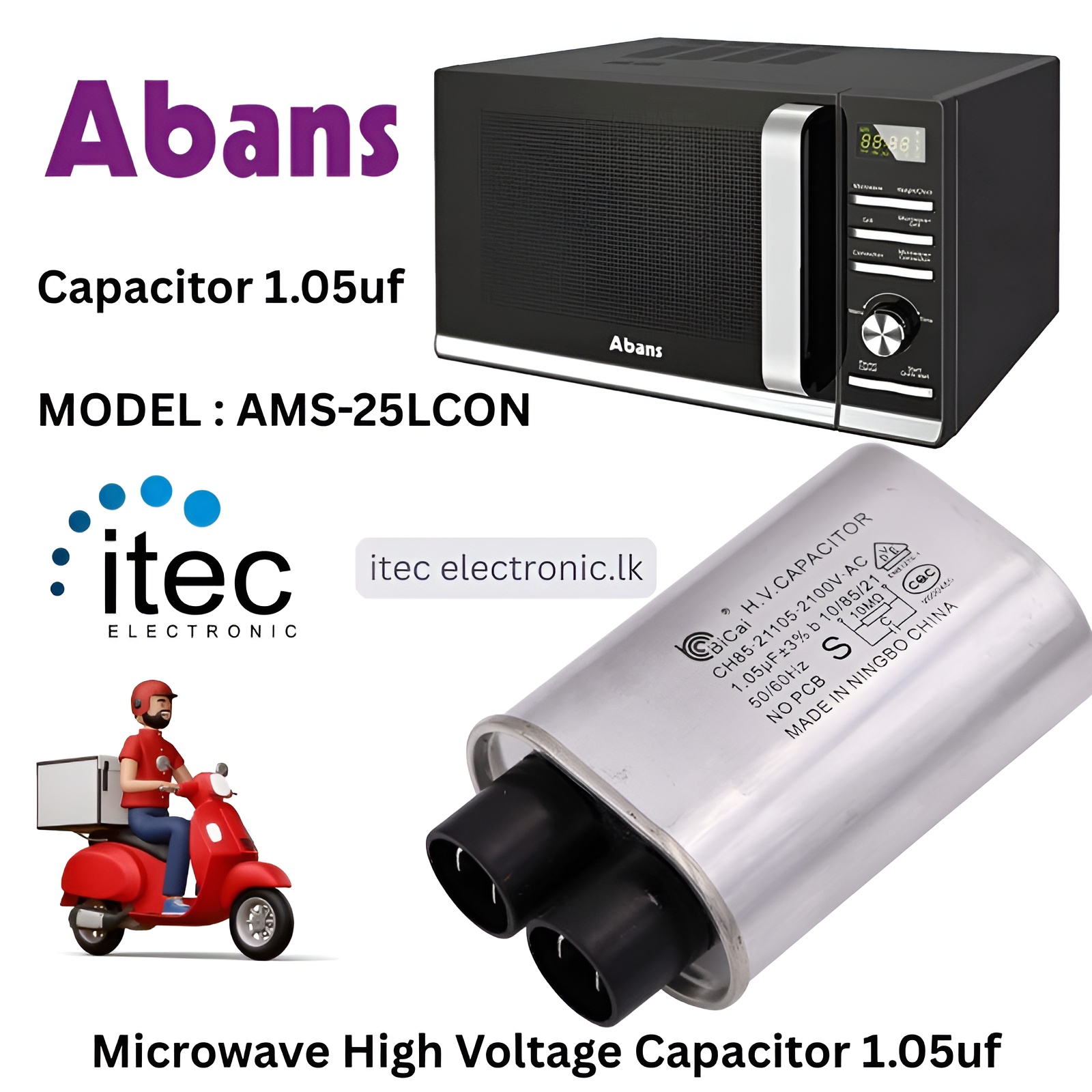 ABANS Microwave High Voltage Capacitor 1.05uf Pin 1/4″ Standard Terminal ABANS MODEL : AMS-25LCON