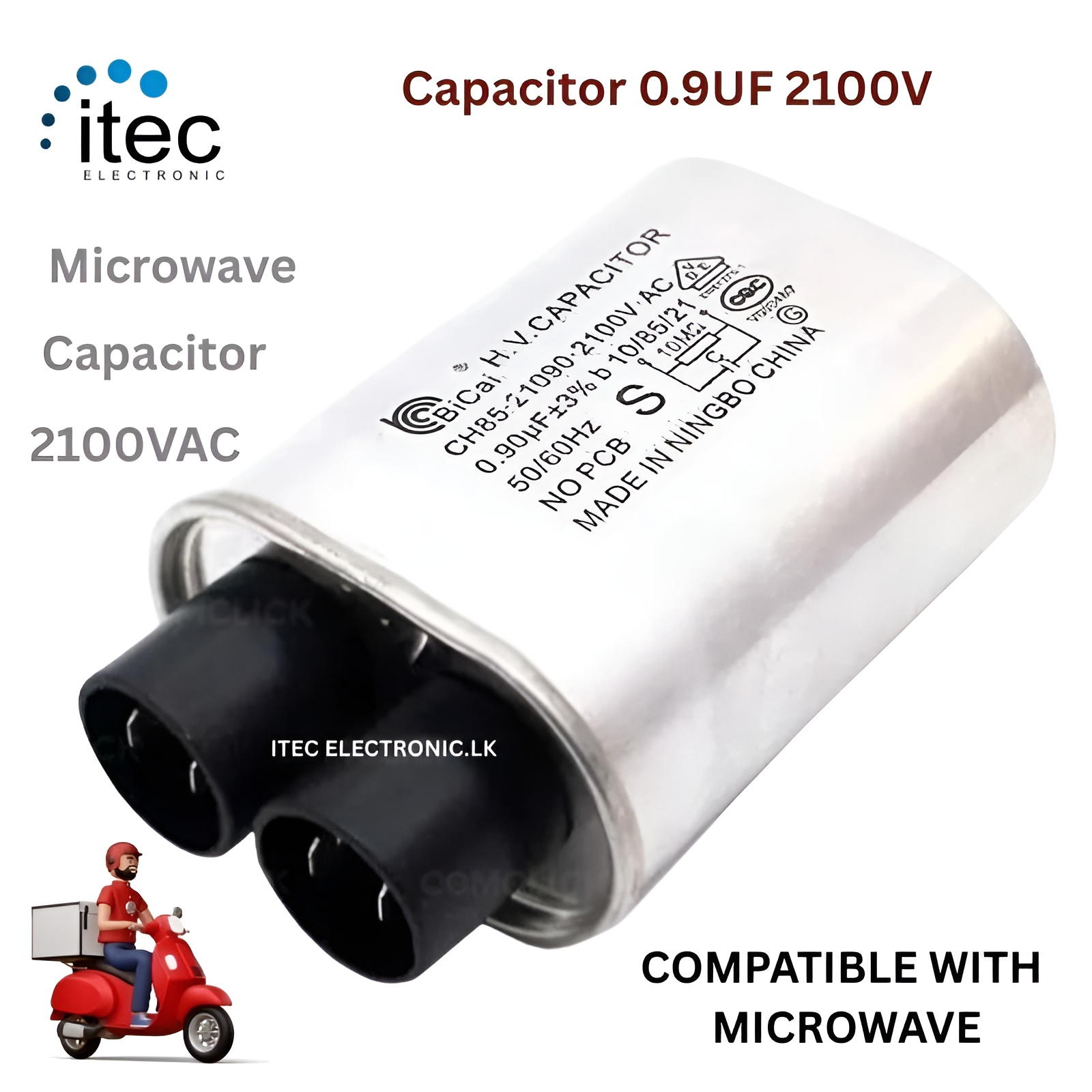 The 0.90 uF Microwave Capacitor has the function of doubling the voltage generated by the transformer, guaranteeing the energy necessary for the microwave to operate.