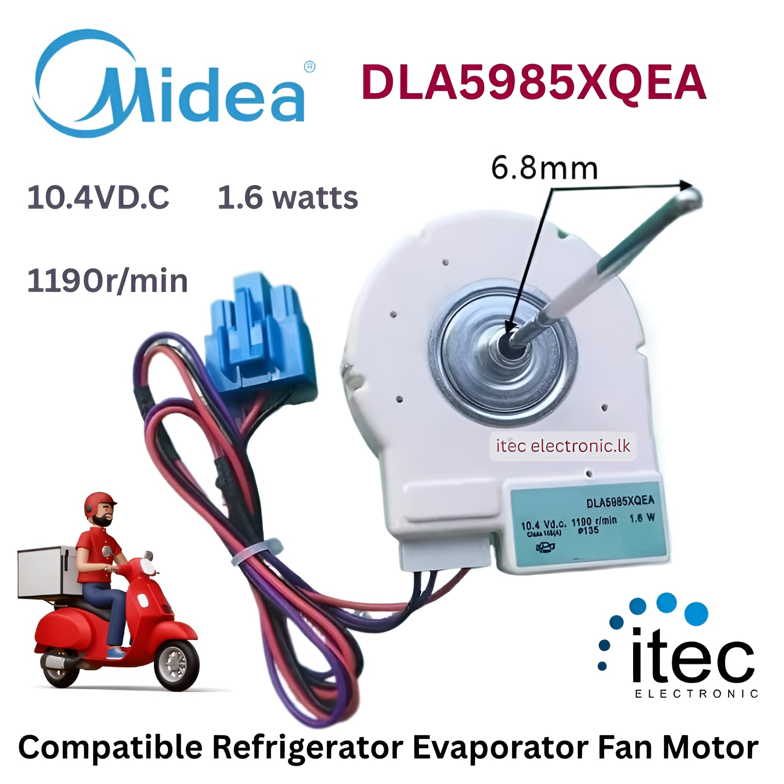 DLA5985XQEA DC 10.4V 1.6W Freezer Fan Motor for Midea Double Door Refrigerator,