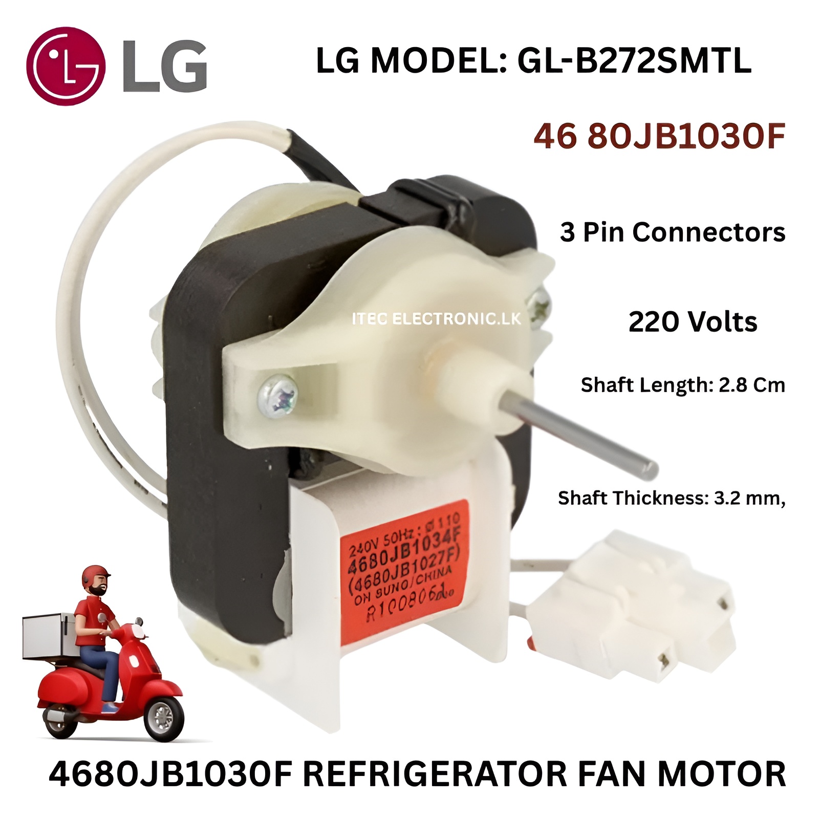 Fan Motor Suitable for LG Double Door Refrigerators . 3 Pin Connectors 46 80JB1030F LG MODEL: GL-B272SMTL