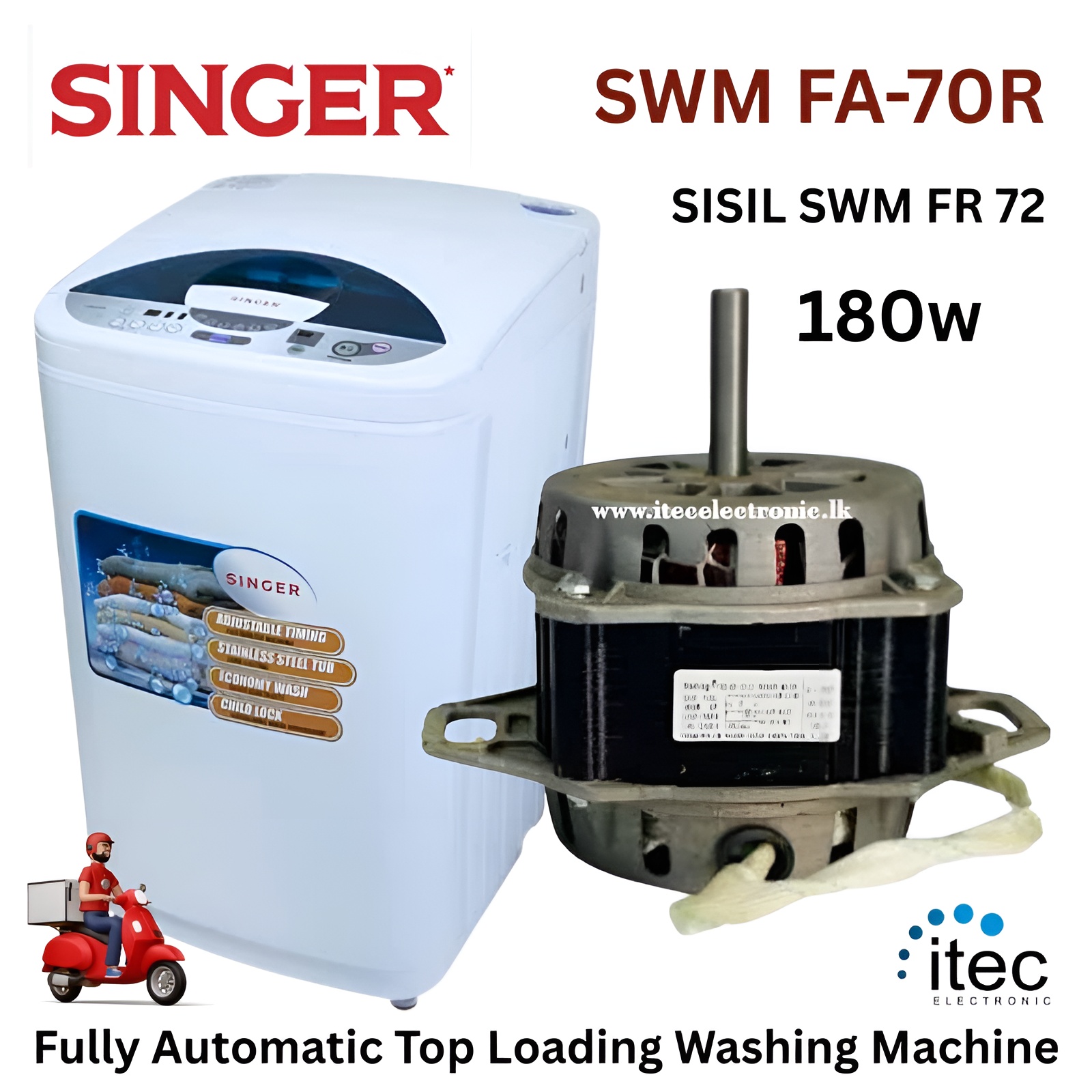 Fully Automatic Top Loading Washing Machine 180W Wash Motor SINGER SISIL 70R Model SWM FA70R SWM FR72