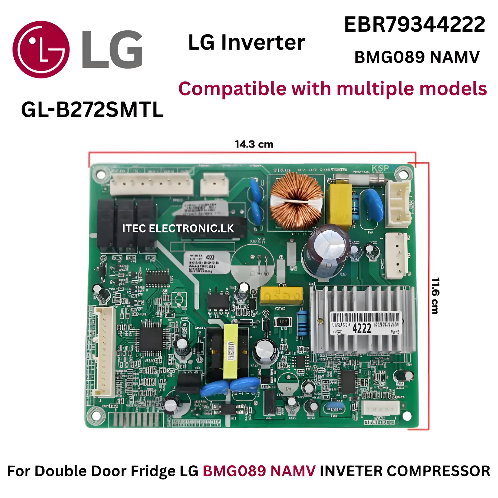 GL-B272SMTL For Double Door Fridge PCB LG ( BMG089 NAMV INVETER COMPRESSOR ) EBR820291 EBR79344222