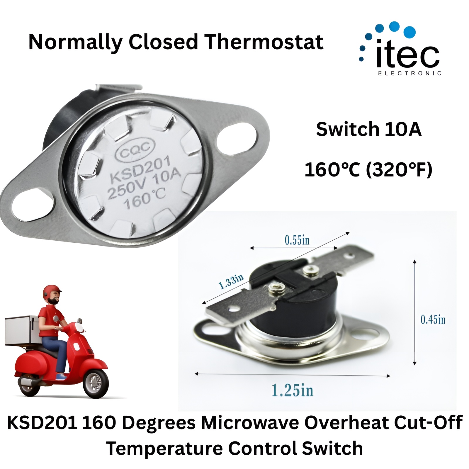 KSD201 160-10A Thermostat Temperature Thermal Control Cutoff Switch Sensor Fits for Microwave Thermostat, to Many Kinds of Small appliances 1 Pcs