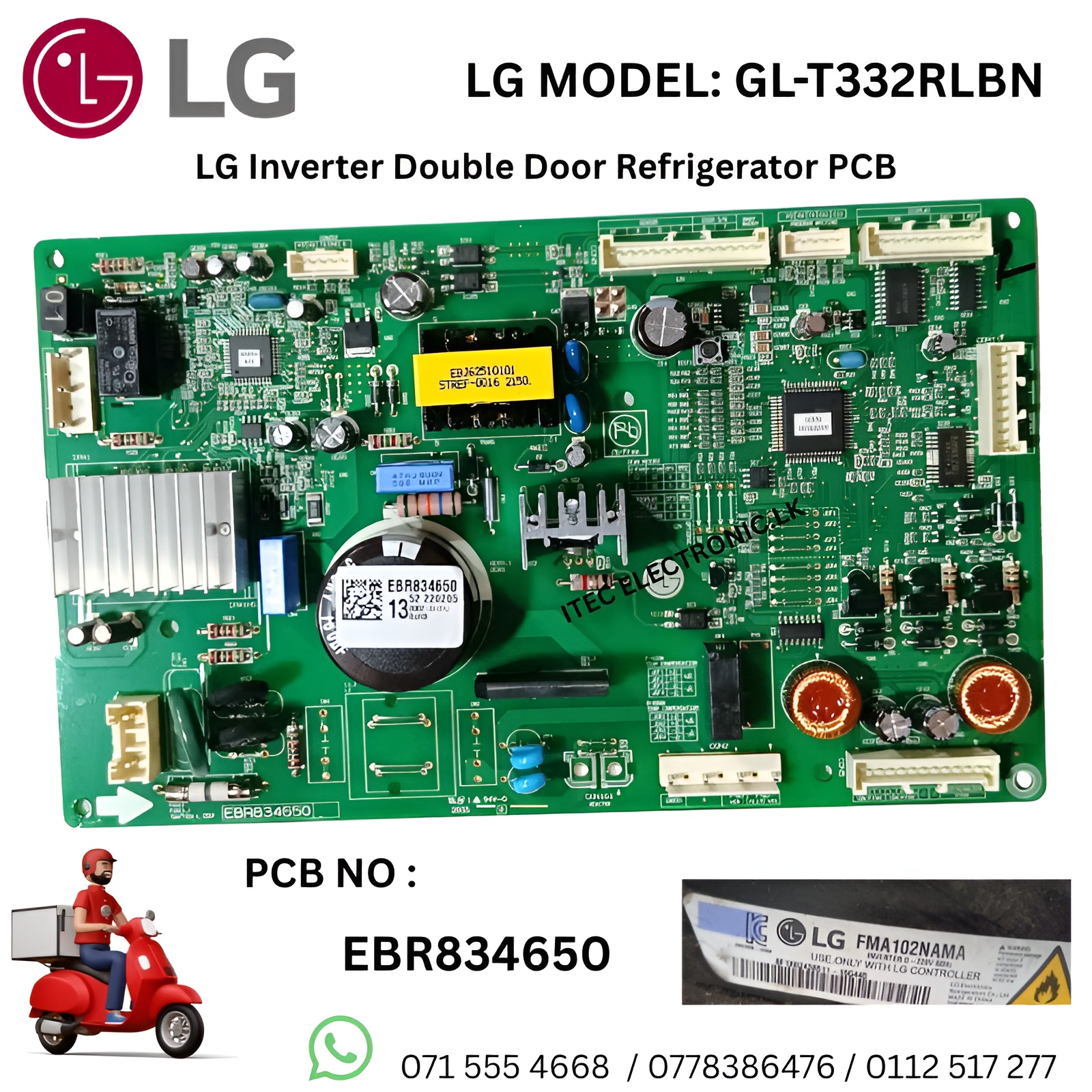 LG MODEL: GL-T332RLBN LG Inverter Double Door Refrigerator PCB EBR834650