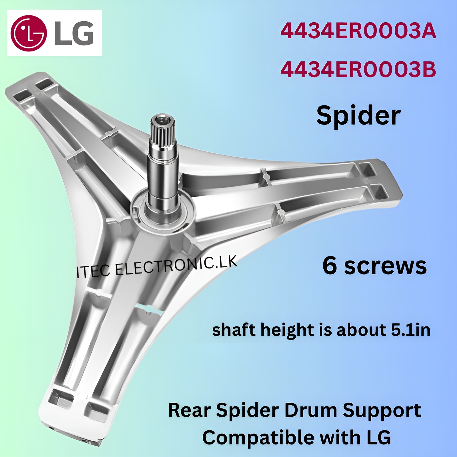 4434ER0003C Washing machine rear spider drum compatible with LG, Kenmore washers. ►4434ER0003C replaces part numbers: 4434ER0003A, 4434ER0003B, 1329240, AP4439264, PS3522973, EAP3522973 and fits Kenmore LG model such as 79640021900, 79648842800, 79648852800, WM1812CW, WM1814CW, WM1815CS, WM2010CW, WM2016CW, WM2016CW/00, WM2016CW/01
