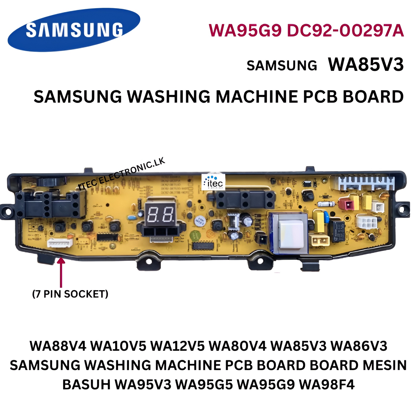 Compatible SAMSUNG WASHING MACHINE PCB BOARD (7 PIN SOCKET) WA85V3/WA88V4/WA10V5/WA98F4/WA95V3/WA12V5/WA95G9/WA95W9