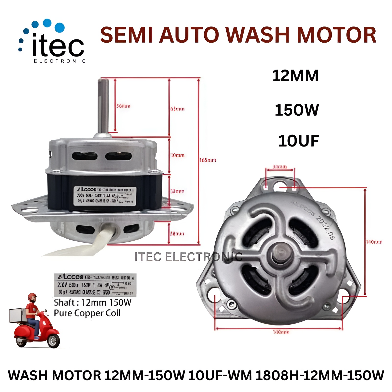 SEMI AUTO WASH MOTOR 12MM-150W 10UF-WM 1808H-12MM-150W SPEED: This Motor is in 1350 RPM