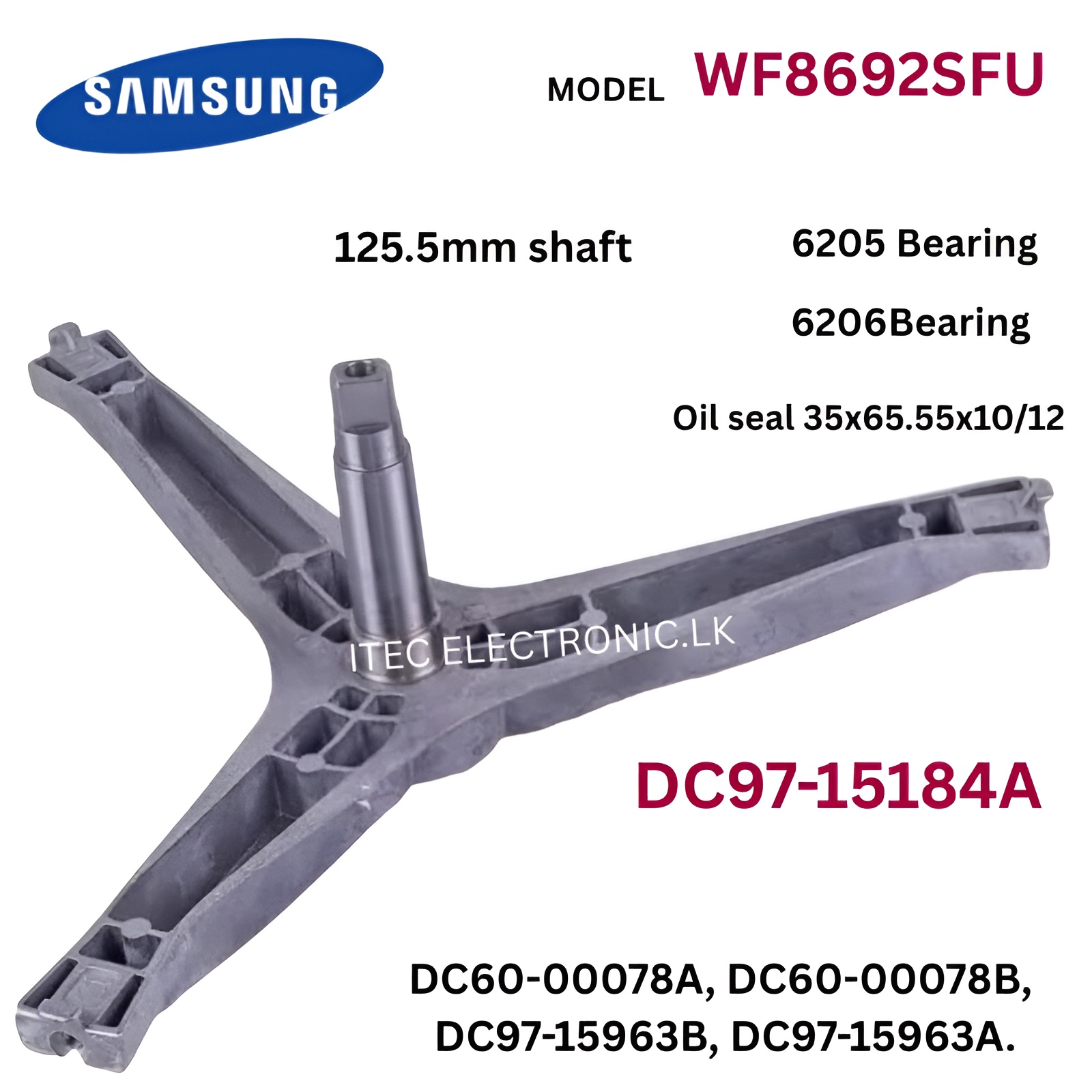 Drum spider for Samsung DC97-15184A washing machine (6205/6206, 125.5mm shaft)
